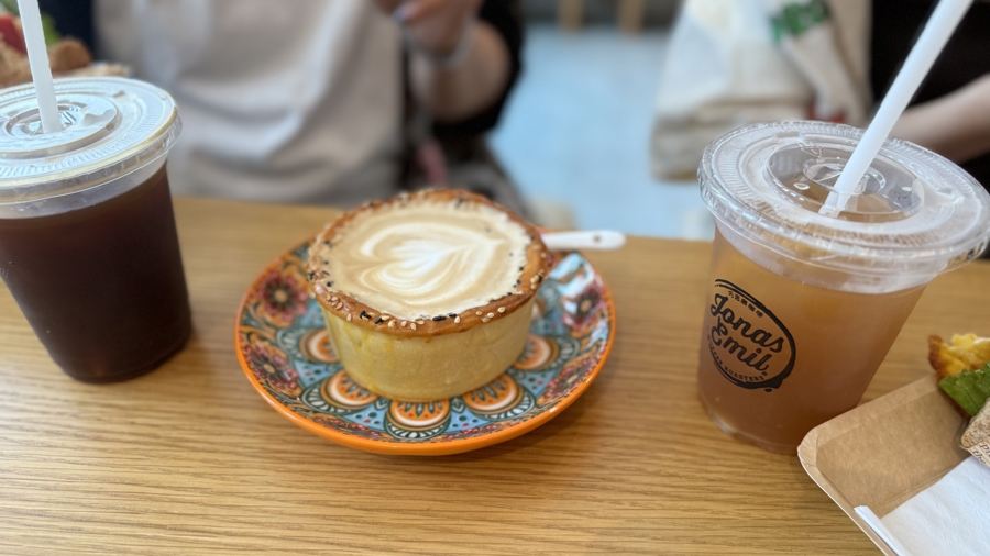16元一份的鸡肉+鸡蛋三明治、18元的果蔬菜沙拉、38元的鸡肉汉堡配饮料套餐……剧院一楼咖啡厅高性价比轻食套餐颇受影迷的青睐。言小小和吴咪咪结束上午的工作急忙赶往电影院,正愁来不及吃午餐,恰好在这里一站式解决了用餐和咖啡。“价格非常亲民,不会有负担。”观影餐饮不仅要让影迷吃得舒心也要吃出新意,记者看到,闺蜜俩还加点了电影节期间的特供饮品——馕咖啡,用馕做成的小杯子与醇厚的拿铁搭配在一起,相当吸睛。咖啡师小肖告诉记者,馕咖啡推出的初衷就是希望赶场的影迷能够在喝咖啡时填饱肚子,没想到这款饮品在社交平台上小火了一把。“起初我们一天进货20个馕杯,这几天不断增加进货量。”此外,基础饮品如美式、拿铁等的销量也相当稳定,“一天可以卖出百杯以上”。