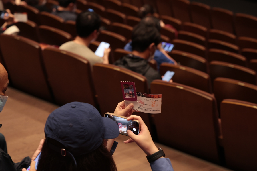 “咔嚓!”《花便当》男女主角铃木亮平和有村架纯的俊美脸庞,若隐若现透着宛平剧院招牌的旋转楼梯,拿着刚领到手的票根在大厅记录下今日份的上影节,这几乎成了影迷在宛平剧院的标准动作。为迎接本届电影节,宛平剧院为每场放映准备了45张票根。据了解,宛平今年首次用胶片制作纪念票根,虽然成本比普通透卡贵了不少,但能让影迷触摸到光影的质感与温度。朱俊寰此番一口气买了20多张电影票,《花便当》是他本届电影节领到的第一张票根。“开了个好头,希望接下来还能领到这么高质量的纪念品!”