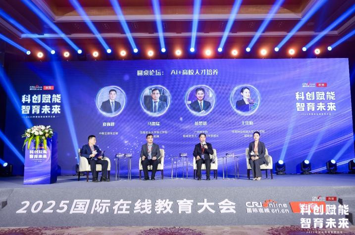 在“AI+高校人才培养”圆桌论坛中,中教全媒体主编夏巍峰与华南农业大学珠江学院校长助理马雷猛、广州商学院新闻发言人翁楚歆、中南林业科技大学涉外学院副院长王佳怡等嘉宾,共同探讨了人工智能如何赋能高等教育创新,为未来人才培养提供新思路。